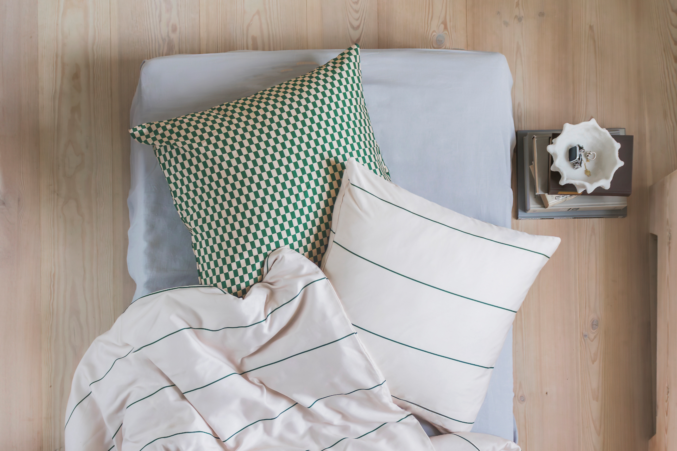 Domowa sypialnia jak butikowy hotel. Pościel Calm Luxury w interpretacji Mette Ditmer.