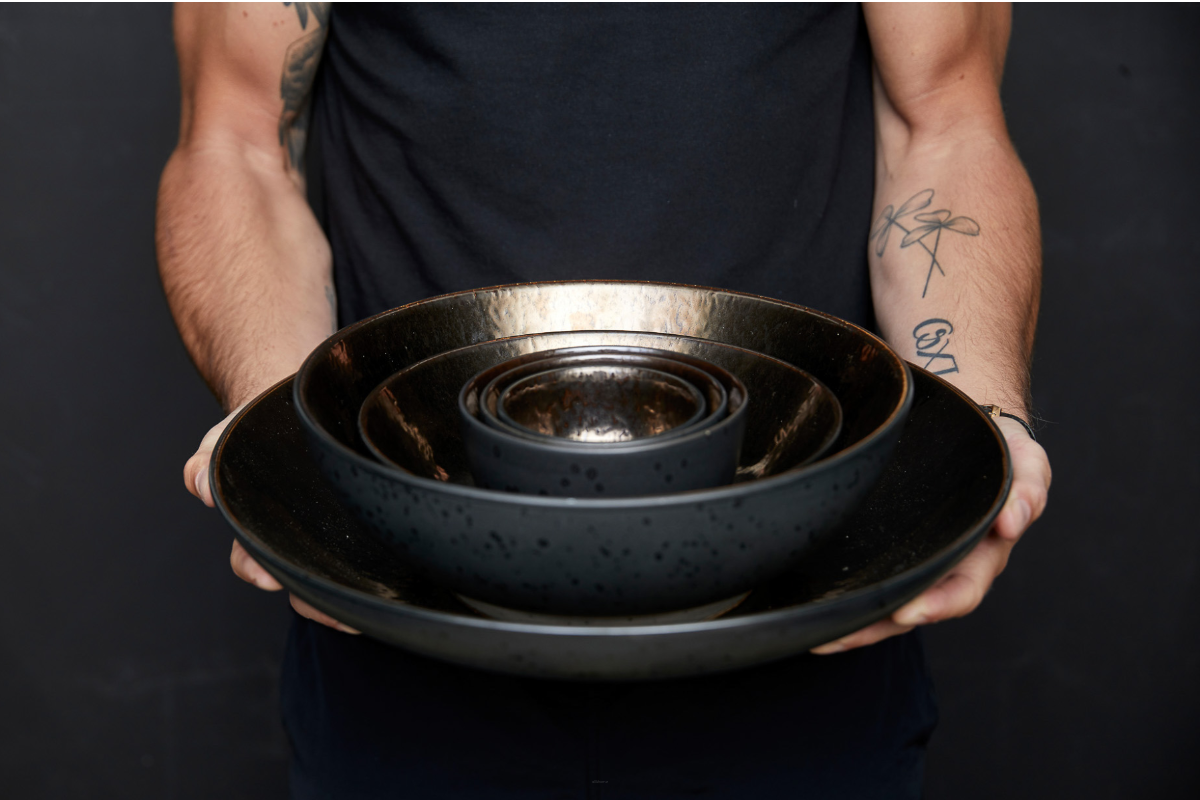 - tableware elements such as bowls, platters, plates and cups made of stoneware