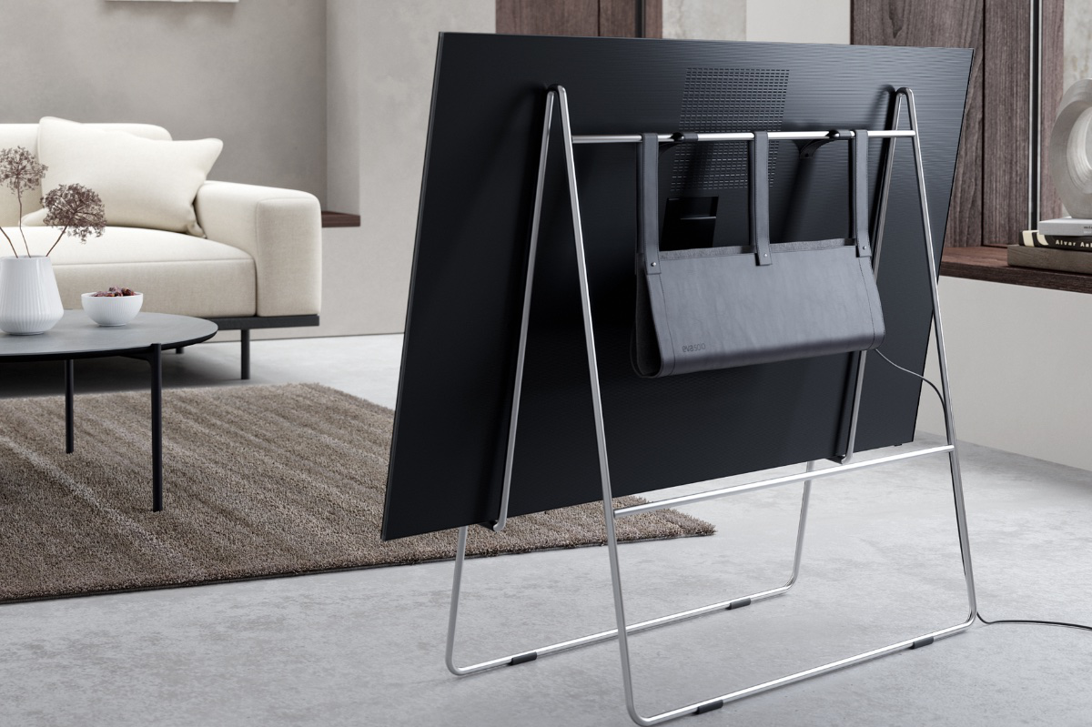 Stojak na telewizor Eva Solo Carry wyróżnia się swoim minimalistycznym i nowoczesnym designem, który na pierwszy rzut oka przywodzi na myśl elegancką sztalugę. Wykonany ze szczotkowanej stali nierdzewnej, produkt zachwyca swoją prostotą, która jednocześnie kryje za sobą przemyślaną konstrukcję. Telewizor umieszczony na tej podstawie zdaje się unosić nad podłogą, co dodaje lekkości i przestronności wnętrzu.