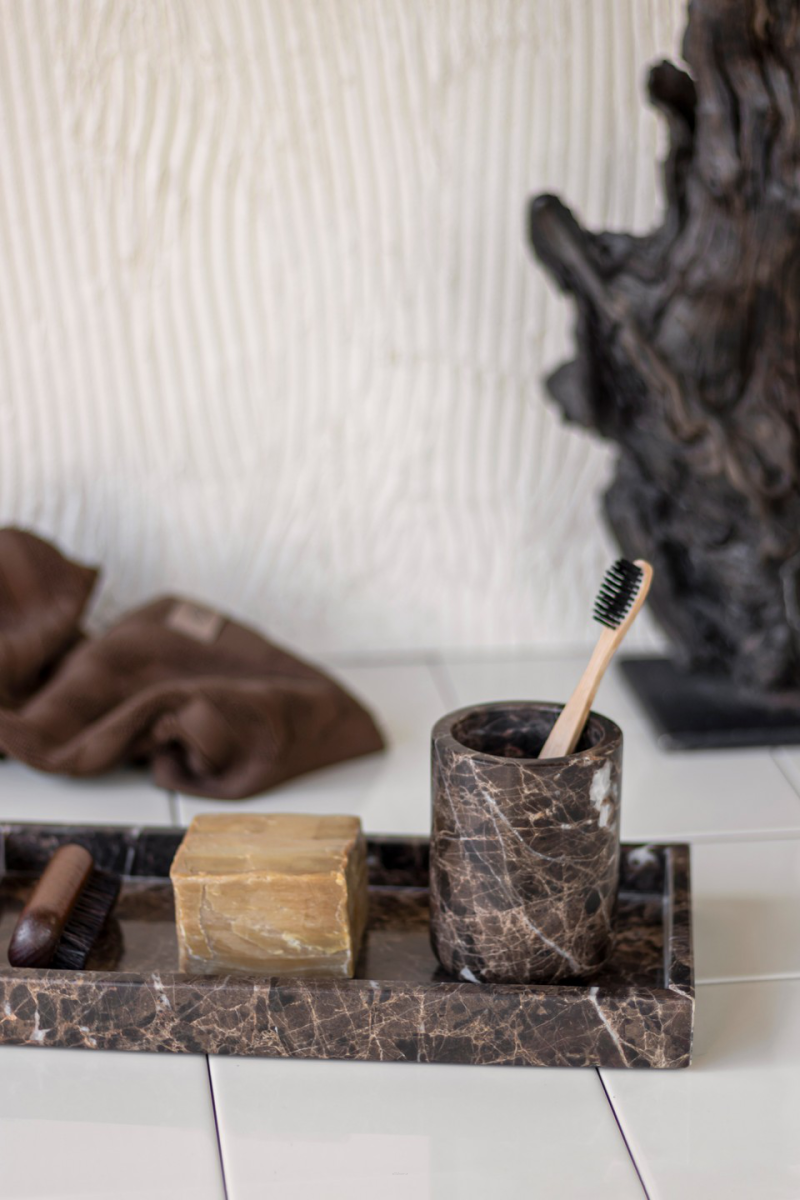 Łazienka to miejsce, w którym codziennie zaczynamy i kończymy dzień, dlatego warto, aby była zarówno funkcjonalna, jak i elegancka. Kolekcja Mette Ditmer Marble to luksus naturalnego marmuru i minimalistyczny, ponadczasowy design. Każdy element został starannie wykonany, aby wprowadzać do wnętrza harmonię, spokój i poczucie prestiżu. Trzy warianty kolorystyczne pozwalają idealnie dopasować akcesoria do charakteru łazienki, od nowoczesnych aranżacji po klasyczne wnętrza. Dzięki tej kolekcji codzienna pielęgnacja staje się przyjemnością, a łazienka zyskuje subtelny, luksusowy charakter.