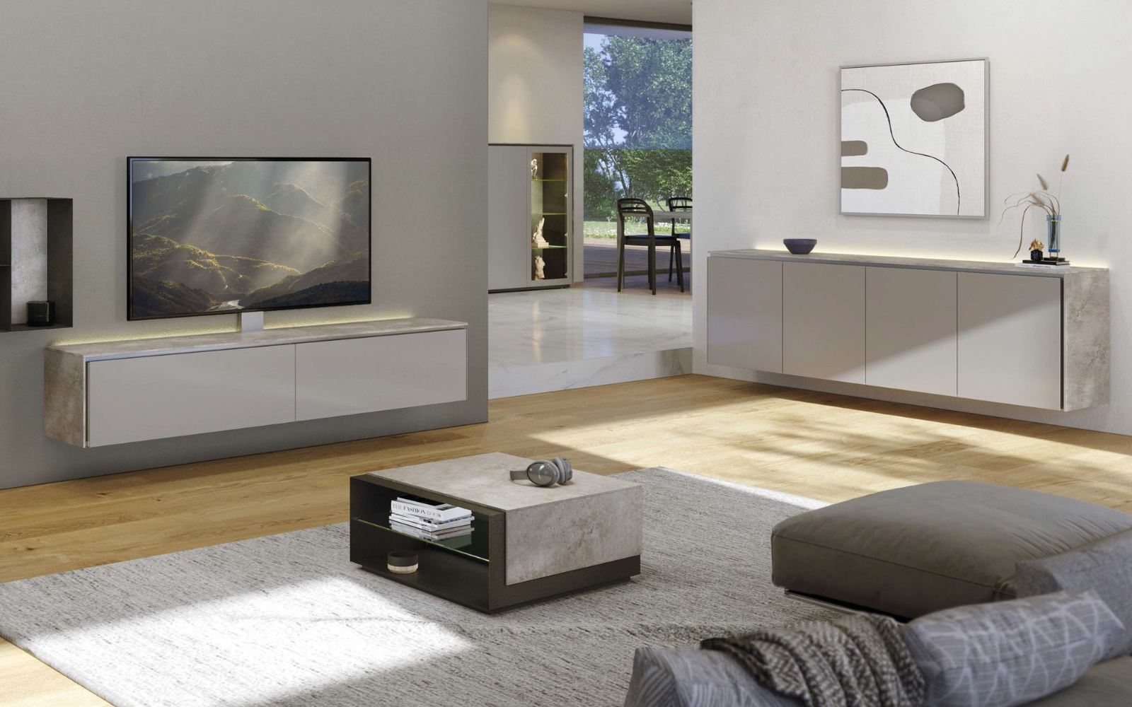Jednym z największych atutów kolekcji Munari Mo&Ma jest jej modułowy charakter. System pozwala na tworzenie indywidualnych konfiguracji – od kompaktowych szafek RTV po rozbudowane zabudowy ścienne. Do dyspozycji są zarówno elementy stojące, jak i meble wiszące, które nadają wnętrzu lekkości i nowoczesnego wyglądu. Dzięki temu możliwe jest dopasowanie układu do każdego salonu – niezależnie od jego wielkości i układu.