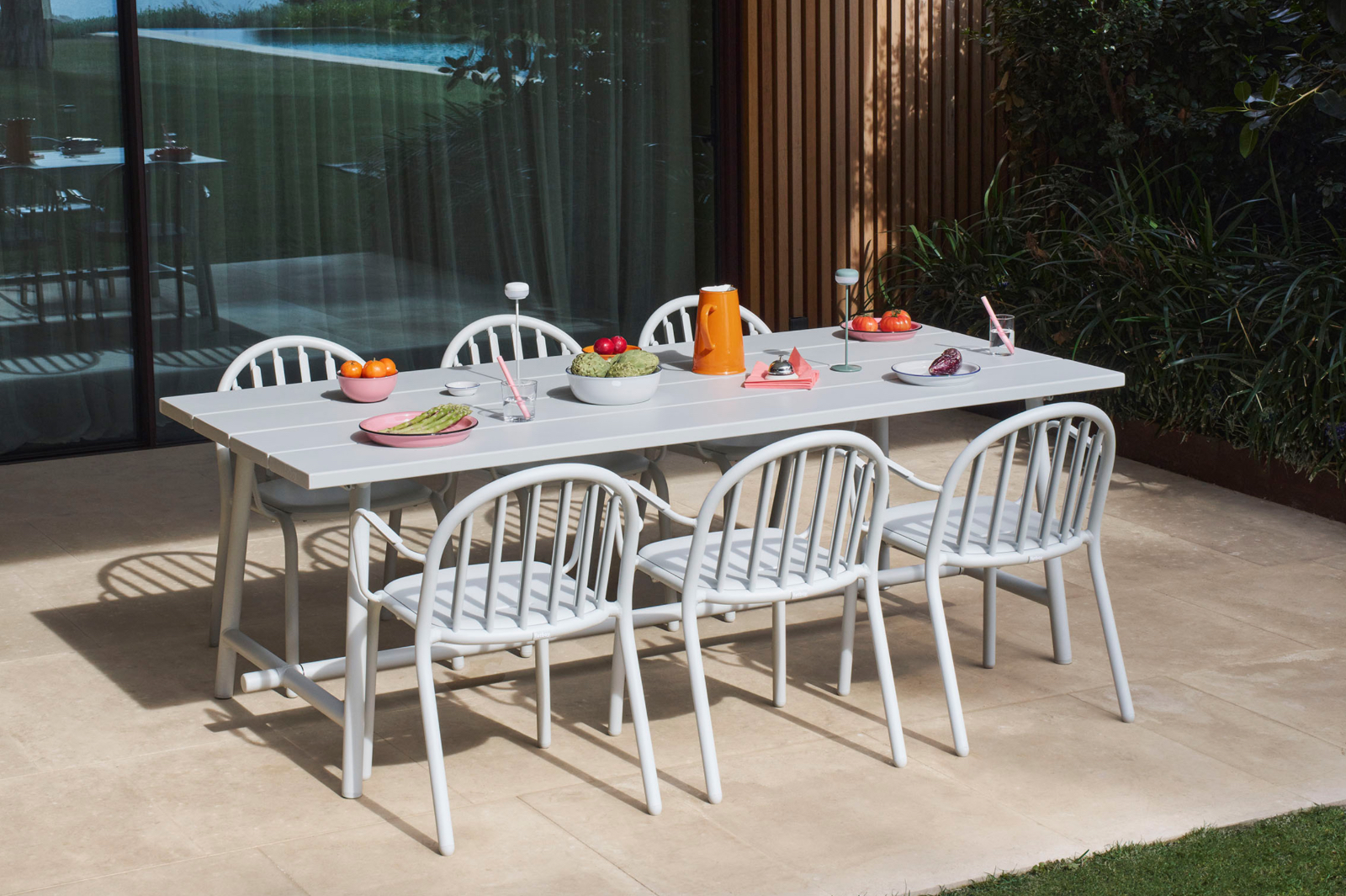 Centralnym elementem kolekcji jest stół ogrodowy Fatboy Fred’s, który idealnie sprawdza się podczas rodzinnych obiadów, spotkań z przyjaciółmi czy letnich przyjęć w ogrodzie. Charakterystyczny blat z szerokimi listwami nawiązuje do klasycznych stołów piknikowych, jednak w nowoczesnym, dopracowanym wydaniu. Duża powierzchnia blatu zapewnia komfortowe miejsce dla kilku osób, a stabilna konstrukcja gwarantuje bezpieczeństwo użytkowania. To idealne rozwiązanie zarówno do dużego ogrodu, jak i przestronnego tarasu. W połączeniu z krzesłami z tej samej kolekcji tworzy spójny i elegancki zestaw mebli ogrodowych premium. Stół Fatboy Fred's dostępny jest w 2 rozmiarach, co sprawia, iż można dobrać odpowiedni rozmiar do zagospodarowywanej przestrzeni.
