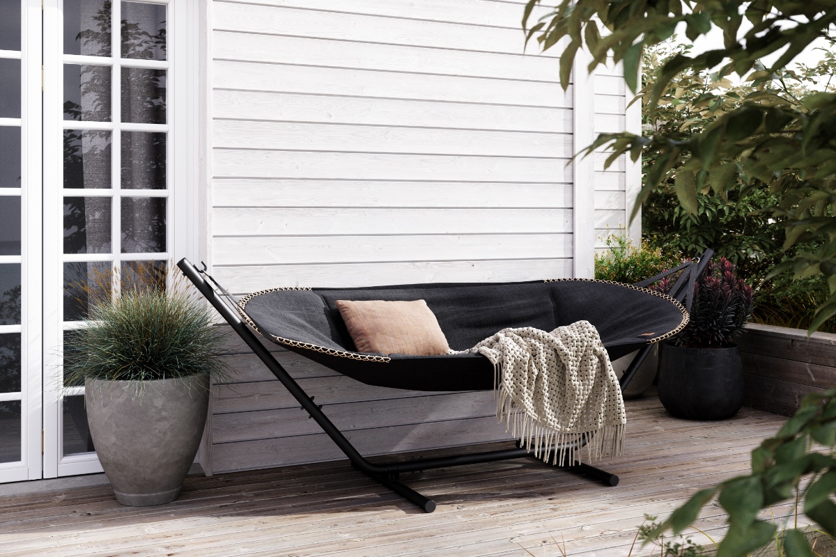 Hamaki SACKit wykonano z tkaniny Kirra lub Cofana. Dostępne są w kilku stonowanych kolorach, kto®e z pewnością wpasują się w dowolną przestrzeń niezależnie od stylu i konwencji. Dzięki zastosowaniu wysokiej jakości tkaniny olefinowej Cobana lub Kirra oraz odpornego na rdzę aluminium, są one w pełni niezależne od warunków atmosferycznych, nawet tych bardzo niesprzyjających charakterystycznych dla klimatu Skandynawii. Dodatkowo, stelaż wykonany z aluminium jest lekki i stabilny. Z łatwością przestawisz hamak w zależności od kąta padania słońca, relaksujesz się tam, gdzie masz na to ochotę.