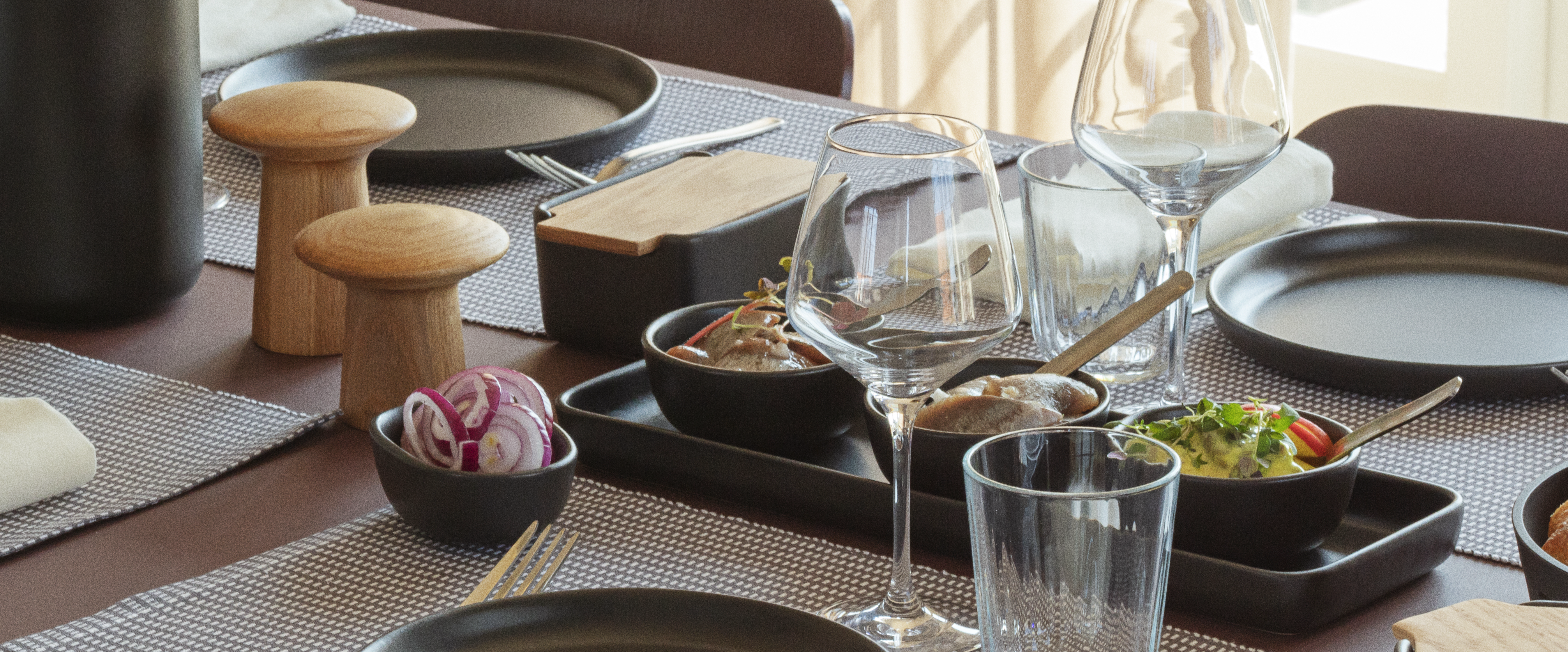 Poznaj kolekcję stołową Eva Solo Nordic Kitchen. Utrzymana w matowej czerni kolekcja naczyń, reprezentuje typowe cechy skandynawskiego designu. To prostota, minimalizm i surowy charakter nawiązujący do klimatu i kultury krajów nordyckich. Naczynia Eva Solo Nordic Kitchen nadają się doskonale zarówno do codziennego użytku, jak i na oficjalne przyjęcia, ujawniając zamiłowanie do dobrego designu. W kolekcji znajdziesz wszystkie elementy niezbędne na stole takie jak talerze płytkie, talerze głębokie, miski, kubki i filiżanki, a także garnki i elementy wyposażenia kuchni.