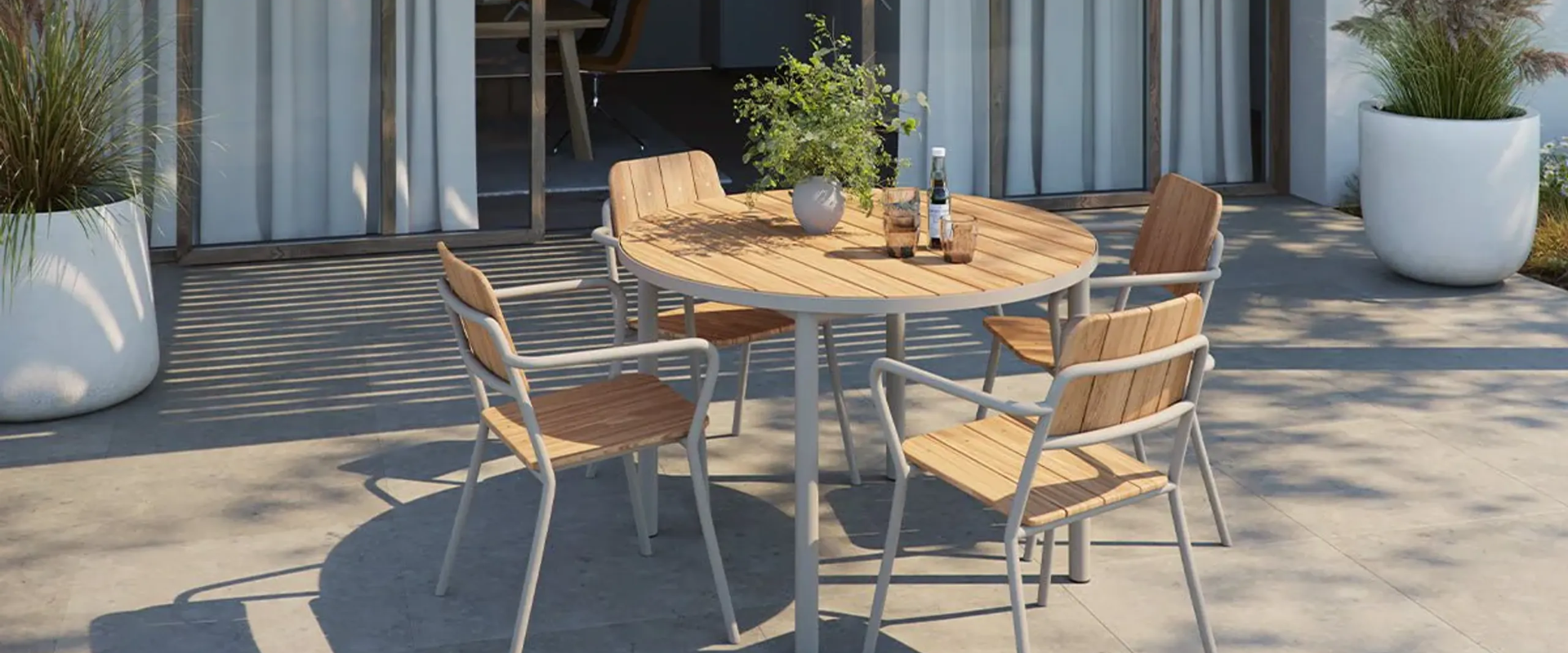 Meble ogrodowe SACKit Patio to kolekcja eleganckich i funkcjonalnych stołów i krzeseł teakowych, które doskonale sprawdzają się na tarasie, balkonie czy w ogrodzie. Wśród propozycji znajdują się stoły ogrodowe w kilku rozmiarach, krzesła, ławki oraz stoliki kawowe, tworzące spójną i nowoczesną linię wyposażenia. Meble wykonane są z wysokiej jakości drewna teakowego oraz aluminium malowanego proszkowo, co zapewnia im wyjątkową odporność na niekorzystne warunki atmosferyczne. Zróżnicowanie oferty pozwala na indywidualne dopasowanie elementów do potrzeb użytkowników, gwarantując komfort i trwałość przez wiele sezonów.