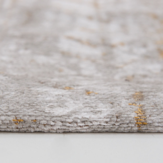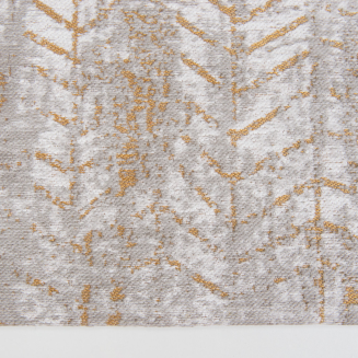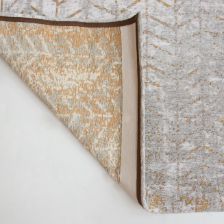 Wykonany jest w 100% z poliestru, dzięki czemu dywan jest miły w dotyku. Tkanie na płasko gęstym szwem metodą żakardowego splotu pozwala uzyskać bardzo szczegółowy i pełen detali wzór, jednocześnie zapewniając wytrzymałość oraz, większą niż w grubych dywanach, odporność na odkształcenia pod ciężarem mebli.