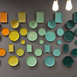 Naczynia zdobi cienka złocistobrązowa obwódka