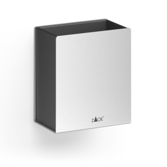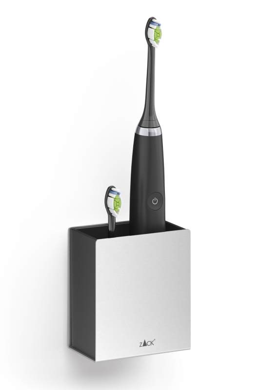 Ścienny pojemnik na szczoteczki do zębów z kolekcji Potes niemieckiej marki Zack. Produkt wykonano ze stali nierdzewnej 18/10 szczotkowanej o matowym wykończeniu oraz z wysokiej jakości tworzywa. Pojemnik można zamontować za pomocą taśmy dwustronnej lub załączonego zestawu kołków ściennych.