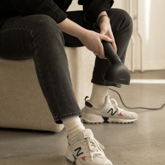 Parownica ręczna Cirrus X szwedzkiej marki Steamery to wielokrotnie nagradzane urządzenie stworzone do szybkiego usuwania zagnieceń i odświeżania tkanin. Wyposażona w przezroczysty zbiornik na wodę, pętlę do zawieszania oraz odporną na ciepło podkładkę parową, łączy funkcjonalność z eleganckim, skandynawskim designem. Gorąca para unosi włókna, przywracając im naturalny kształt, a jednocześnie usuwa zapachy i eliminuje 99,9% bakterii.